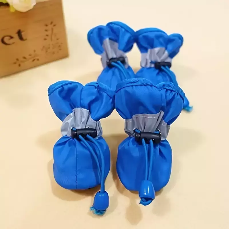 Cómodo conjunto de 4 botitas confeccionadas en tela impermeable para mantener sus patitas secas y evitar resbalones, gracias a su suela antideslizante.